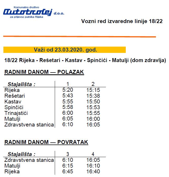 Uspostavljaju se tri gradske i šest prigradskih linija, a među njima i linija Kastav-Matulji-Rijeka.